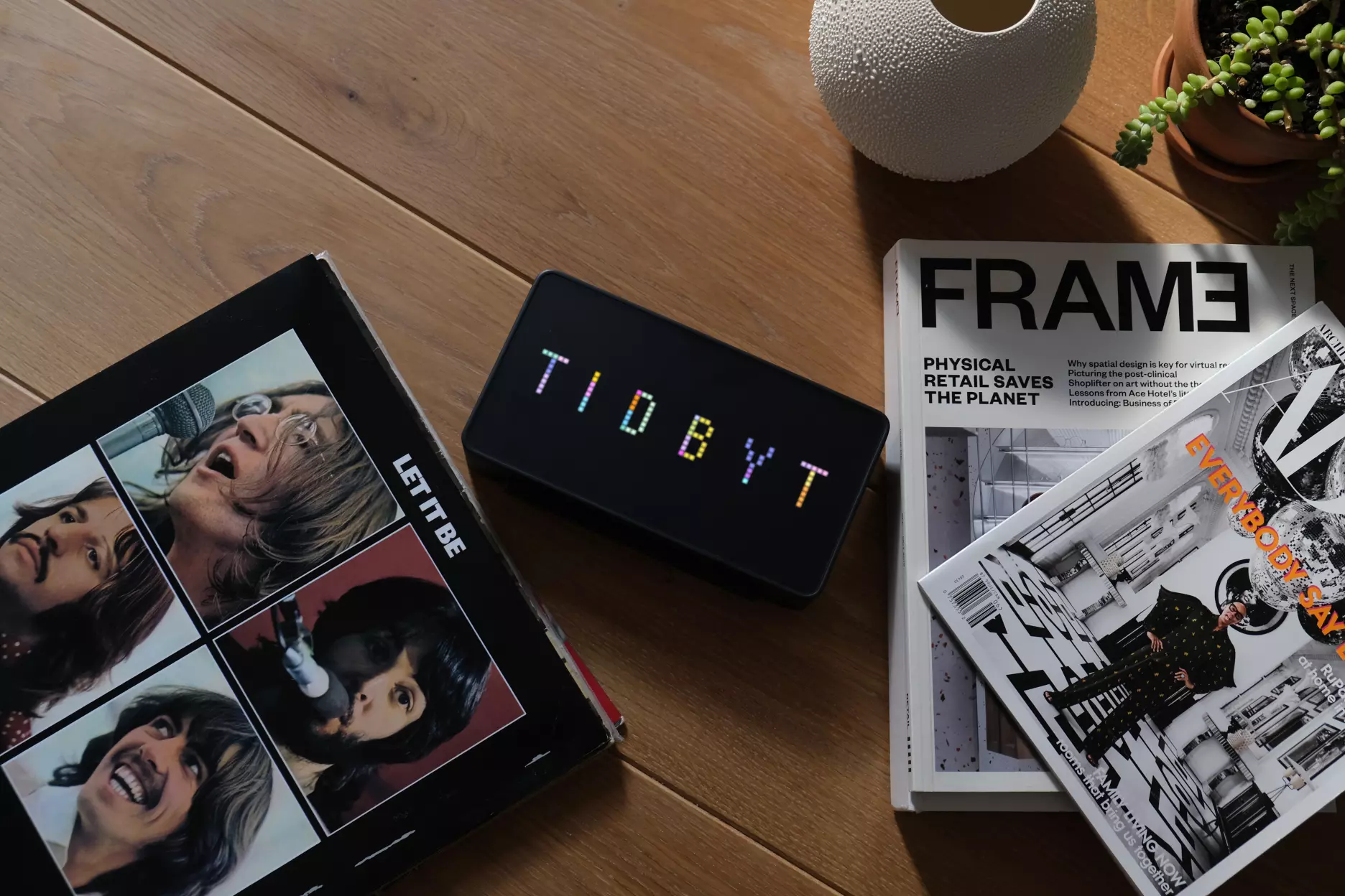 If you want to hang Tidbyt on your wall, the built-in mount gets it perfectly flush. Just look around and you probably already know where your Tidbyt will go.